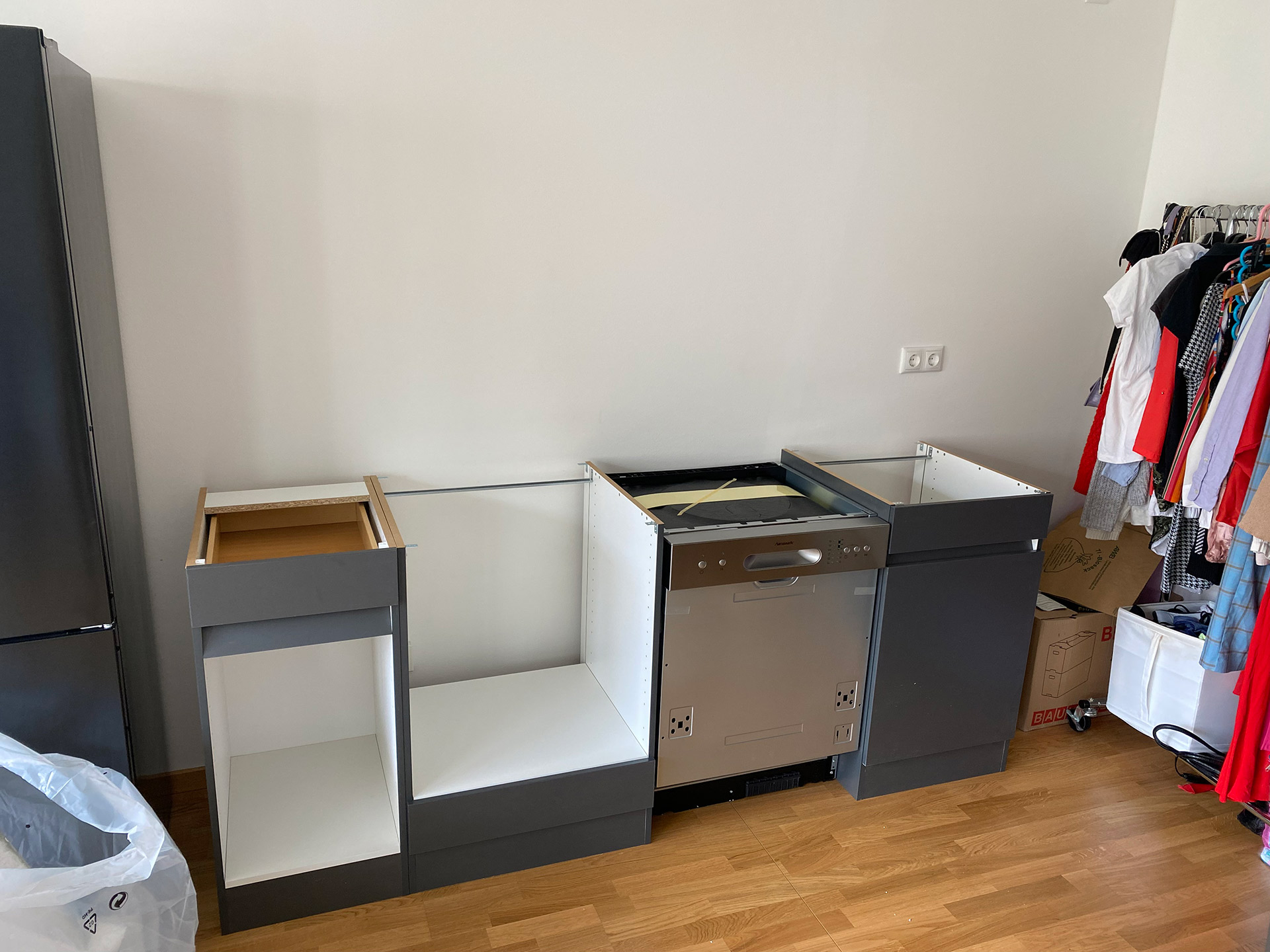 Zusammenbau einer neuen Küche mit Elektrogeräten